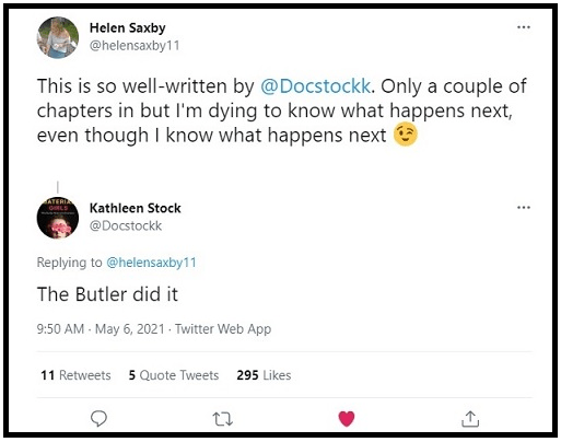 13/05/2021 Edited to include this screenshot because I keep having to explain it wasn’t my joke. Full credit goes to Kathleen Stock. It still makes me laugh.